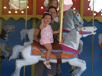 We took Kaiya to the railroad park yesterday to ride on the train and carousel. She loved it, even if it was a little hot! We went on the train once and the entire time she waved to everyone we passed. I wish I was someone she was waving to because it would have made a cute picture. Instead I was watching her from behind. She and dad like to look at the engine. We got ice cream after and she usually will share with her dad. Yesterday was not a sharing day, she wanted her own ice cream and she didn't want dad touching it. It was funny to watch.