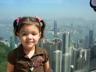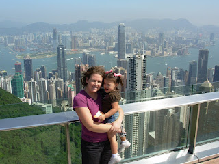 Kaiya at The Peak over looking Hong Kong. You have to visit The Peak on only very clear days which don't happen very often. We were planning on doing The Peak day one, but ended up doing it day three because the haze was so bad on day one.