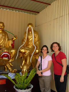 My sister in law and I with a buddha who really needs to TRIM and PLUCK those EYEBROWS!!