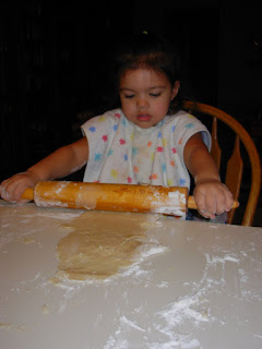 Kaiya had a blast rolling the dough and cutting the cookies. Unfortunately she also loved squishing the cookies and rolling them again! So, we only got a few cookies in the end! But, she had fun!!