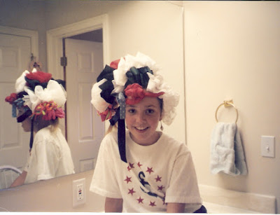 However, in rescuing items from the water, I have had the opportunity to have to sort through a box that had lots of misc. photos in it to dry out those that were damp. I came across this SILLY photo of my cousin, Meg. Now, I have to say I must have had something to do with this do because those are my hair bows from growing up and that is a bathroom in my parents home . . . However, I recall nothing of a story even surrounding this photo . . . poor Meg!!