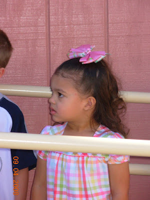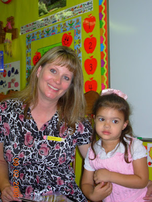 Finally, we got up this morning, had mickey mouse pancakes, and got ready for our FIRST ALONE REAL DAY of PRESCHOOL!! She was excited and worried. On the way there I was making sure she knew I would be there to pick her up and that she would have lots of fun. She gets teary eyed and says, "Mom, I am going to miss you." Love those moments! I follow it up with how much fun she is going to have with her teacher and all the friends she is going to make! Not to mention, her little boy friend is in her class! That seems to resolve the tears!!