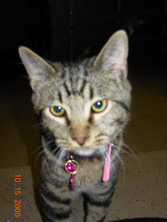 Luckily, our family vet, Uncle C VET, took care of the spay/neuter for us. So, here we are with this cat! Wish us lots of luck!! Kaiya is loving it. To our first pet! Tiger, isn't so sure about the CITY . . . I think she/he (UNCLE C VET, what is he/she?) trying to figure out what all these weird noises are that she is hearing. Such as the skateboard on the sidewalk down the street, sort of made her a little leery and didn't want to move. She is use to the sounds of the country, cows, horses, a truck, 4 wheelers, and etc. We will see how she adjust . . . and if Tiger is a he, well . . . it takes a REAL MAN to WEAR PINK!! She/he isn't so sure of this thing called a collar, tag, and bell that she now has around her neck! It seems to be entertaining her as she gnaws, bits, and paws at it! I am sorry little kitty, from the neck loose fancy freedom of a ranch, the the tight collared world of the city . . . I hope you adjust well!!