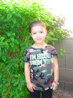 And, I had to post the CAMOU that finally won her over!! We have had lots of offers of camouflaged clothing for her over the past 4 - 5 months. But, all were turned down, even the pink camouflage! However, this we loved because it says, "I'm hiding from you" and she thinks it is funny!!! P.S. if you can't find Kaiya it is because she is HIDING FROM YOU!!