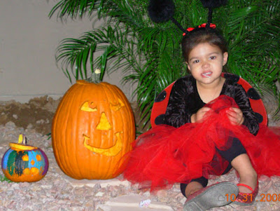 Kaiya for the FIRST TIME EVER was brave enough to reach in and touch the gooey pumpkin innards! She did a pretty good job cleaning out her little pumpkin. I carved hers/mine aka THE BIG ONE and her itty bitty one! Dad's is still in the garage uncarved and SHALL be had for DINNER . . . PUMPKIN CURRY!! I am sure it is delicious!!
