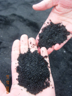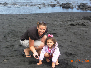 On our drive, we stopped at one place to see a BLACK SAND BEACH! I stated I wanted to see one! Kaiya was asleep when we pulled up and showed no interest in waking up! So, Grammy and I hit the sand while Granddad chatted on the phone and sat in the car with Kaiya!!