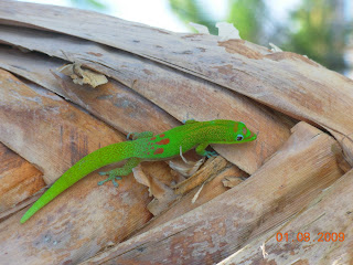 We both enjoyed our morning at the pool. It was sunny and warm and I tried to sneak in a little resting on the lounge chair hoping to get a little sun on my lilly whites . . . . When I first laid down I discovered this little critter watching me just a few feet from my face . . . so, then I had to try to get a good photo of him and show him to Kaiya. I am afraid all that excitment scared him off!! Oh well!!