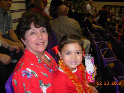 We dressed in our red . . . Kaiya got a nummy powder donut dessert at half time! Here is Kaiya with her RED and Grammy! (Ginger, yes I have a picture of me too . . . but, I hate taking pictures alone . . . Kaiya wouldn't stand next to me and well, it is less than FLATTERING facial expression! So, no pictures of me lady!! One day!!)