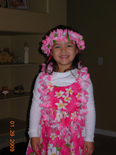 Kaiya has been dreaming of Hawaii because there are GOLF COURSES there!! Yep, she has decided she likes to help Granddad hunt golf balls on the Golf Course and is convinced they only have them in Hawaii! Besides that . . . she has been teaching her "babies" about Hawaii! Here is a pretty cute picture of her in her Hawaiian dress (same one we never got a picture of while there with her cousins) and her fake lei and haku (flower lei worn on head). Isn't she cute?? Long sleeves and all during our little dip of cold weather!!