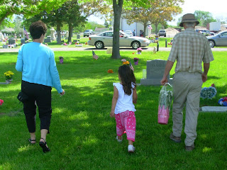 Lucky for us, we were on our way home from Idaho on Memorial Day, and we got to take flowers to those who have passed on both my father, and mother's side of the family. it was a wonderful teaching moment! And, she is probably going to take after my mom, she LOVES to WANDER around CEMETERIES and look!!