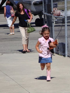 In SLC, the Pilots asked Kaiya if she wanted to come sit in one of their pilot chairs and they would push some buttons (sure it would have been nothing but the windshield wipers, etc! However, Kaiya refused to sit in one of the pilots chairs! I was so MIFFED!! It isn't every year anymore you get invited to A - come in the cockpit B- sit in a pilots chair C - have them push buttons for you! This picture was as close as she would get to the cockpit! I couldn't believe it and was so DISAPPOINTED she didn't take that opportunity!!