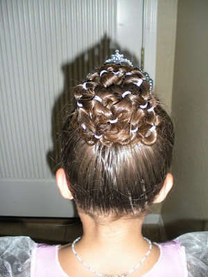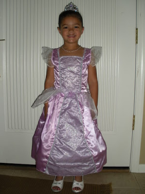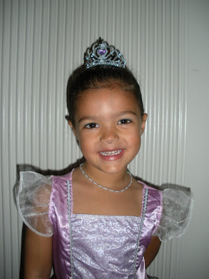 Kaiya got invited to a birthday party today. The party was a dress up party, and everyone was suppose to come in their favorite dress up clothes!! It was a stretch between being a princess and being Snow White. She decided on princess!! There was a new hairdo I'd been dying to attempt. So, we tried the new do this morning!! Here is Princess Kaiya all dressed up for the party!!