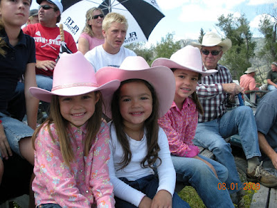 As you can see, missing the youngest Triple M, but if you are ever looking for us at a rodeao, search out the 4 PINK cowgirl hats ALL LINED UP!!! That would be US!!