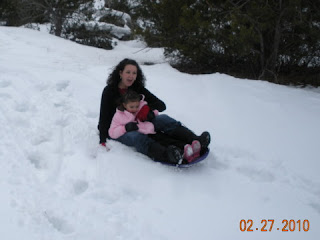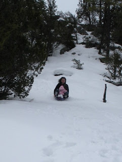 We arrived to the snow, and proceeded to sled down the hill! Kaiya loved to squeel the entire time! I joined in a few runs down on the sled.