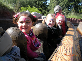 The best place to go after spending an unreasonable amount of money on a face paint job for a princess, is no place other than SPLASH MOUTAIN!! The girls were wise enough to put their jackets on backwards as to protect their faces. However they still did get a bit wet!!