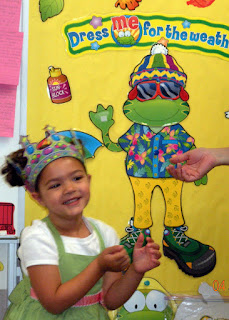 When it is your birthday in Prek, you get to bring family picture, a baby picture, a show and tell item. But, probably most important is you get to be the HELPER for the day! You get to lead in calendar, lead the line, hold the door open, dress the weather frog, etc! It is a BIG DEAL!!!
