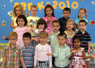 I cannot believe Kaiya's second year of preschool came to an end this week! She has gotten so big, since she started last year! It was an amazing transformation from Preschool 2008/2009 to Preschool 2009/2010. I remember near the beginning of the year in 2008, she didn't want to participate in something the class was doing. This year, she could hardly control herself in taking a lead, raising her hand, and participating as much as possible! She is a fabulous kid!! Her class did their usual end of the semester program. They sang lots of cute songs. Once again, I got lucky enough to help set up for the program, and I was able to catch a great pictureof her class in action during their warm up.