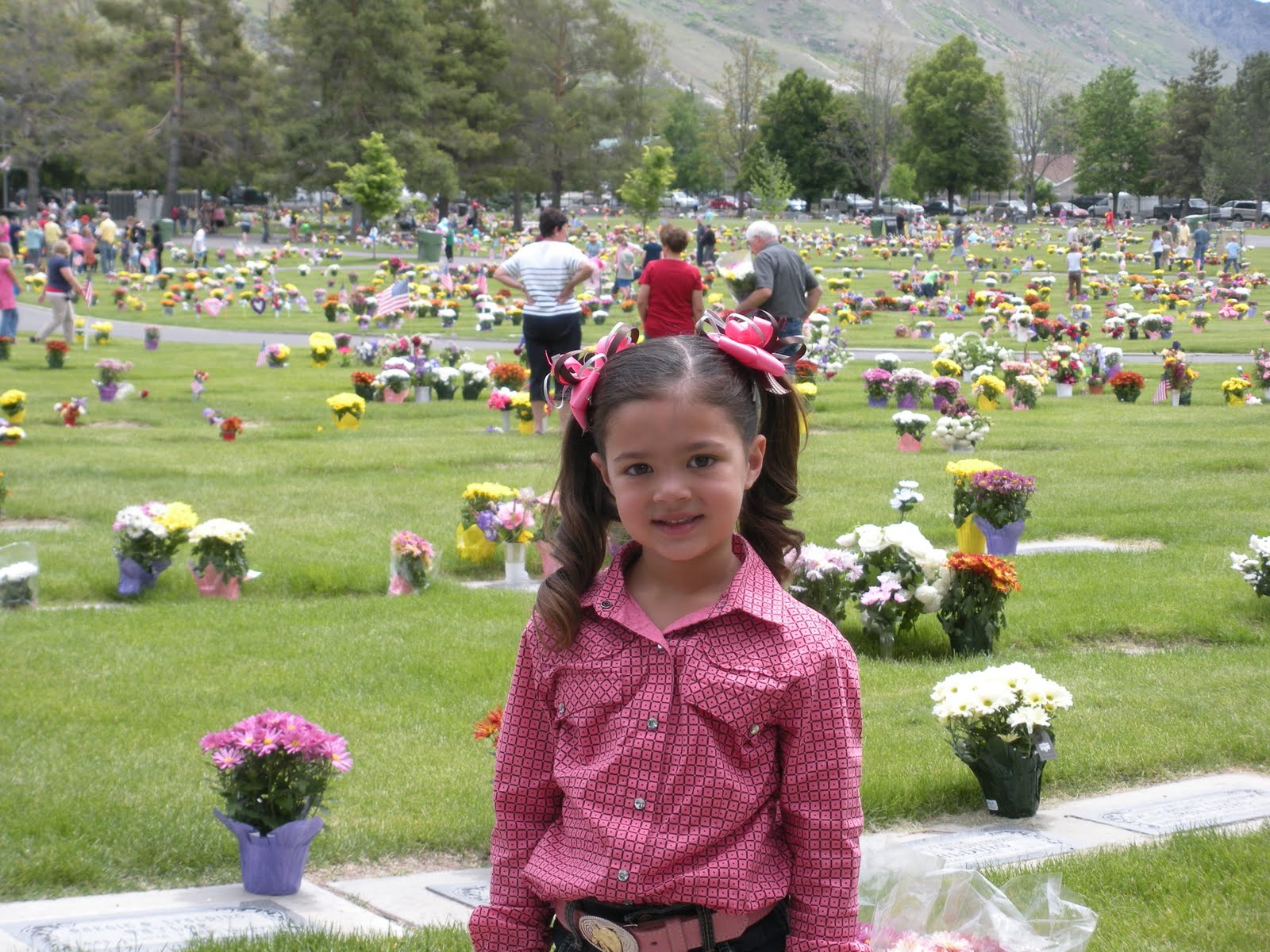 Kaiya was so excited to put flowers on graves!! She loved to ask who the relatives in the graves were. It was also great to be able to talk about why there were American Flags on some of the graves, about the men/women who died fighting for our freedoms. Memorial Day is probably one of my favorite holidays, I enjoy being able to remember my ancestors, but also the many heros our country has had who gave their lives for my freedoms, and Kaiya's. It was so nice to have examples in her life of people who have fought for our freedoms, and to be able to say, the people we honor on Memorial day fought like them, only they didn't get to come home to their families. When I was a child, the field behind Kaiya covered in flowers was covered in white crosses and flags on Memoria Day. I always remembering being in awe of how many flags there were. I wish she could have seen the sight.