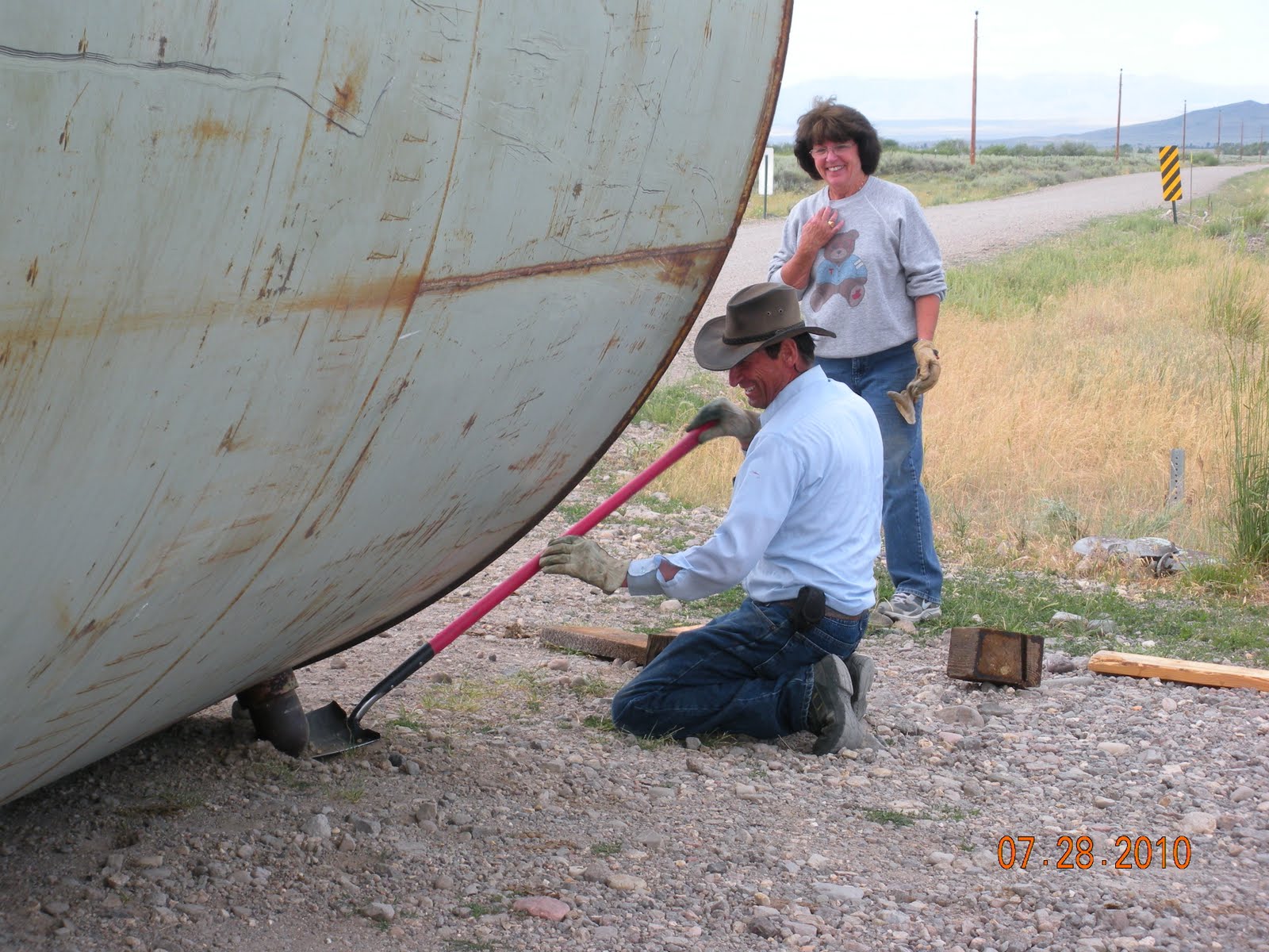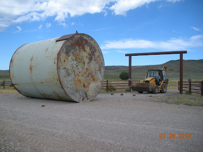 Kaiya spent a night with her cousins in Idaho Falls. Wasn't planned, but was requested by her. She had lot of great fun! While she was enjoying time with the cousins, the rest of us were being used to move one LARGE water tank from across the road in the barpit to to the ranch! Specifically thru the gate! There were lots of ideas as to what would happen! Some thought we'd get it thru for sure, it just depended on how much damage would occur on the way in!! With Granddad in charge, Grammy, Quin, and I assisting we set off to the task!! Here are our fabulous pictures of the "like to do things the hard way" task!