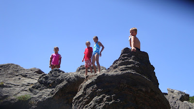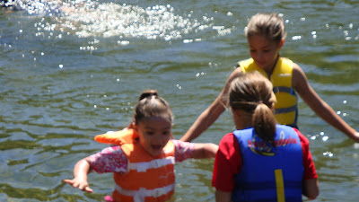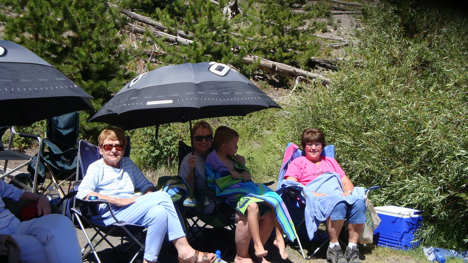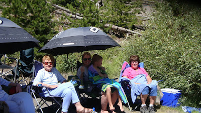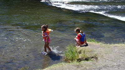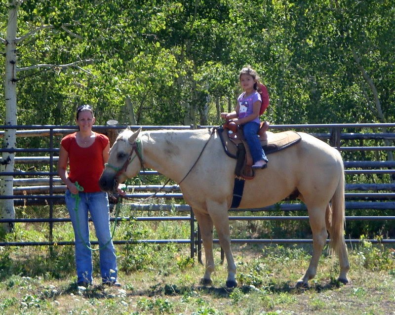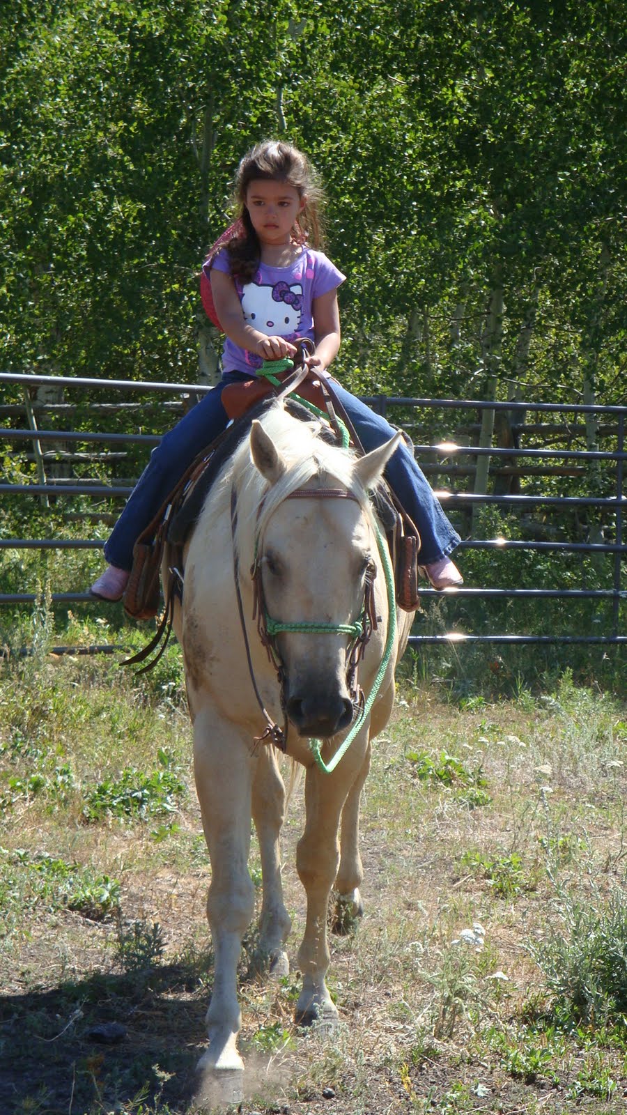 Kaiya seems to request four things with our yearly trip to my parents ranch. First, "can we go swim where you jump in and float down," "fish," "see the water shoot up," and "ride a horse." We hit them all every year, and this year we failed at one . . . the "water shoot up" a.k.a. Old Faithful Geyser. I attempted, with a 6 a.m. wake up to try to spot animals on the drive into the park . . . and she was like a rock . . . no sign of anything except sleep. Here are some pictures of our other favorites swimming the Firehole, horses, and I believe one with Kaiya and Granddad.